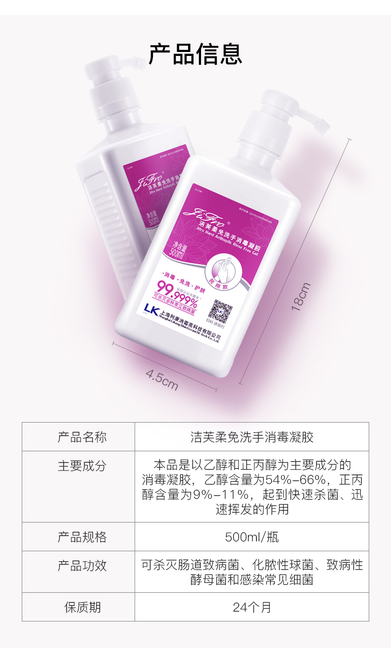 利康洁芙柔免洗手消毒凝胶_利康免洗凝胶500ml_手部消毒_医院同款