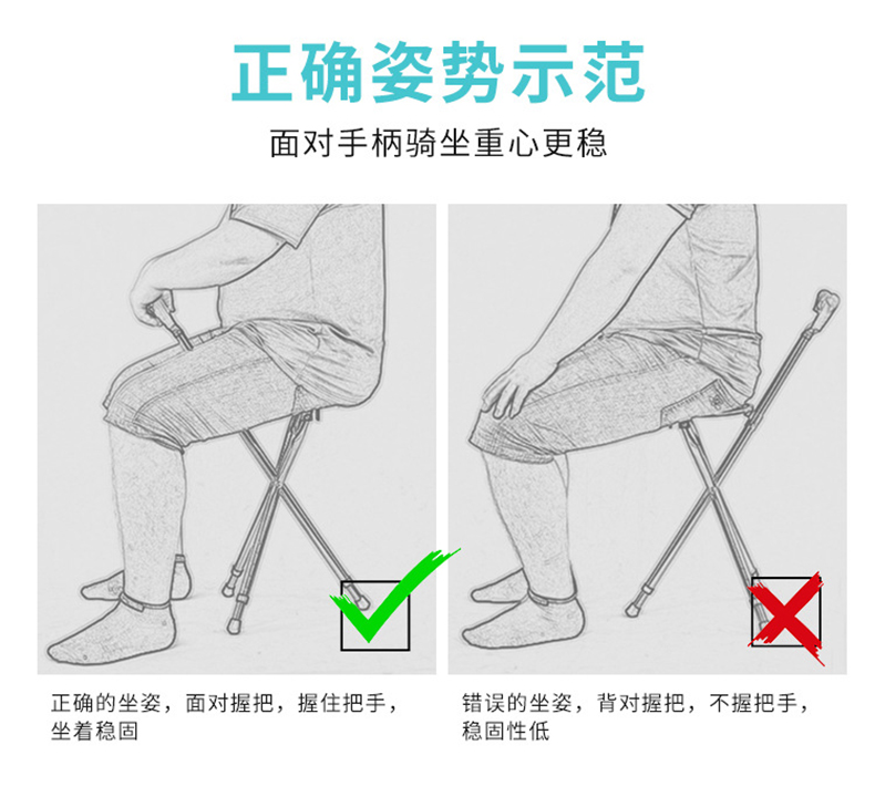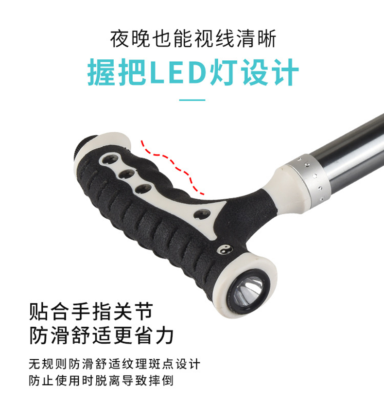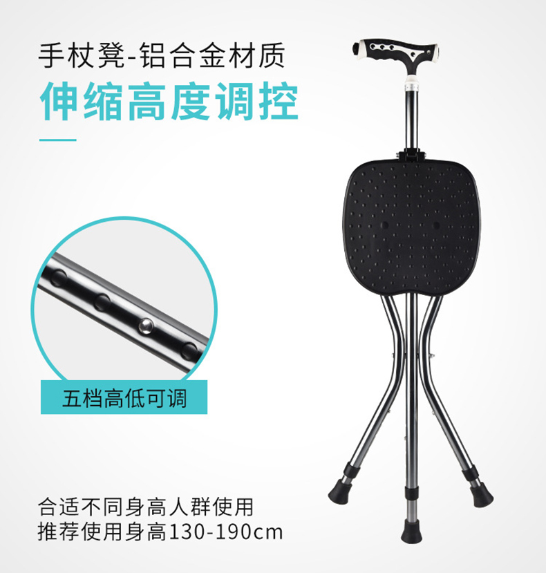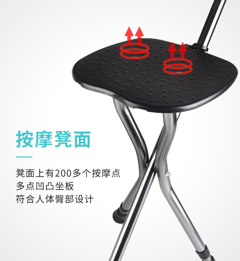 铝合金折叠拐杖凳_拐杖板凳_可坐可杵_手柄带灯_磁石按摩