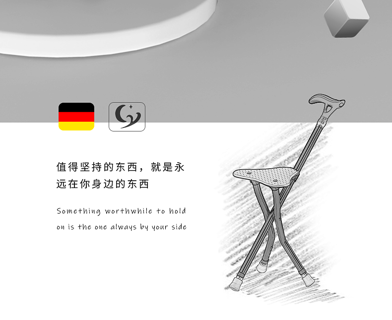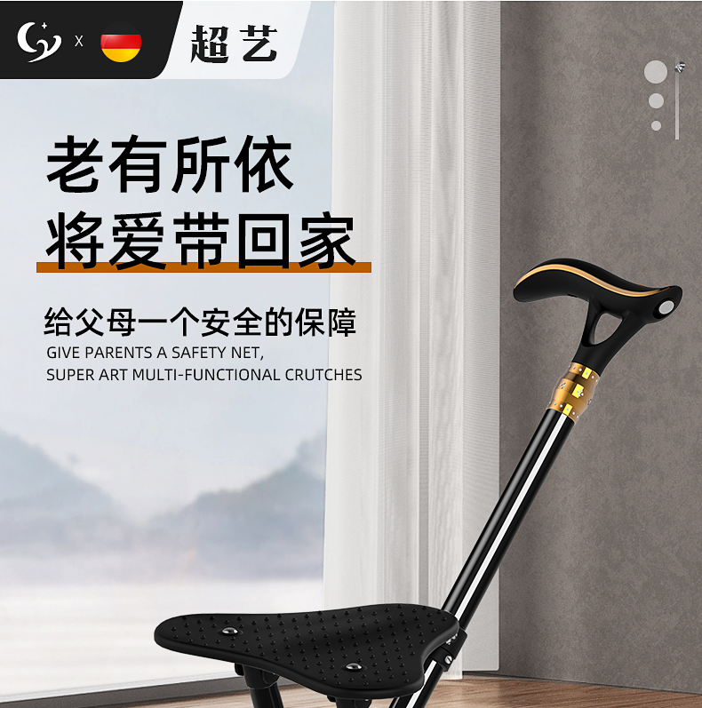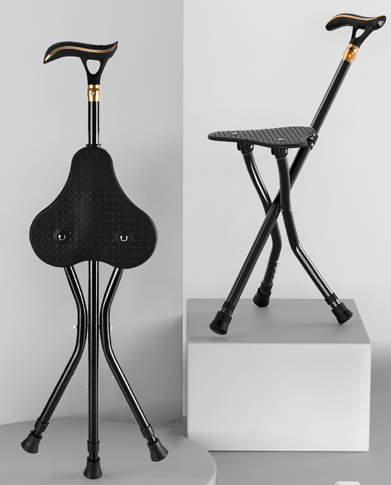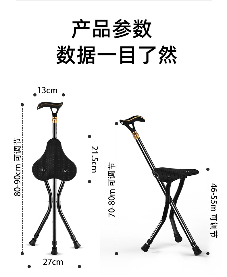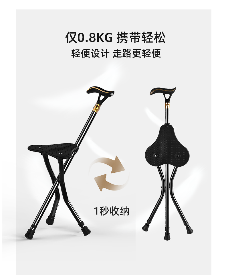 铝合金折叠手杖凳_高度可调_手柄带灯和报警功能