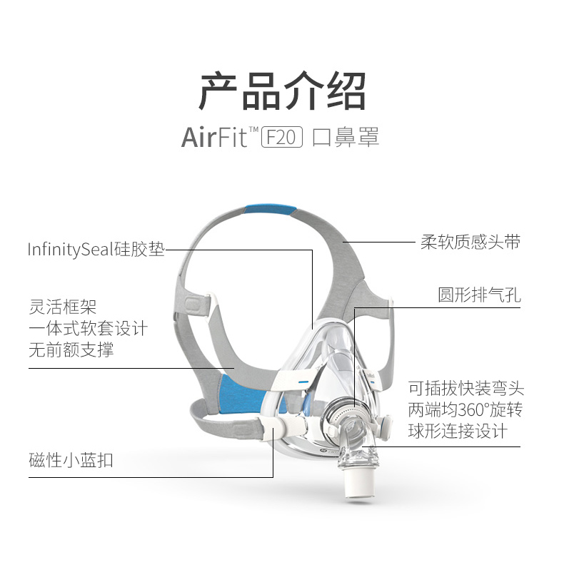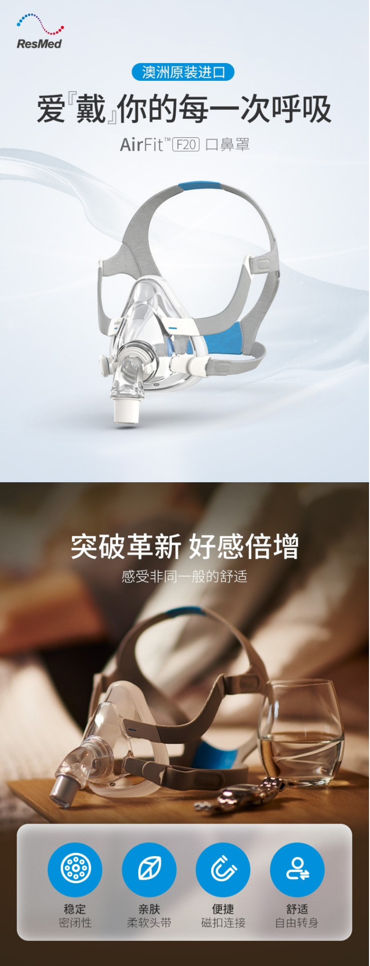 瑞思迈口鼻罩F20瑞思迈面罩瑞思迈全脸面罩可与肺病呼吸机双水平呼吸机配套使用