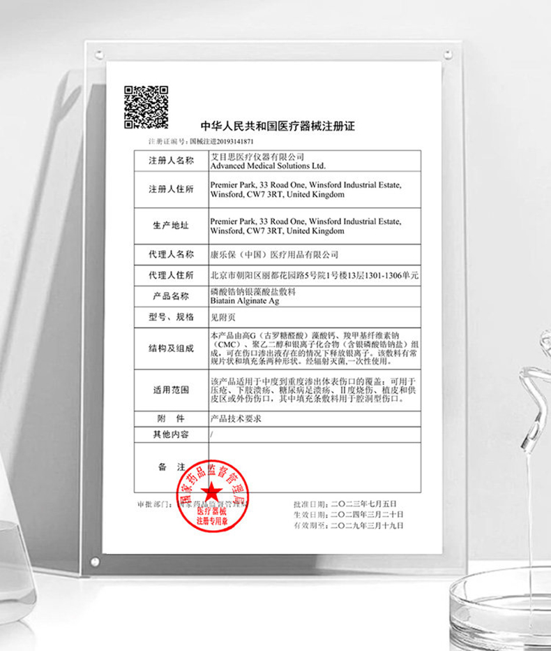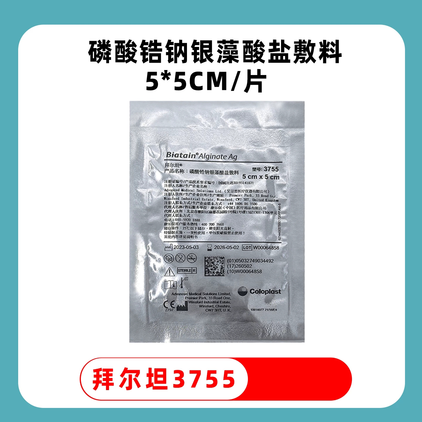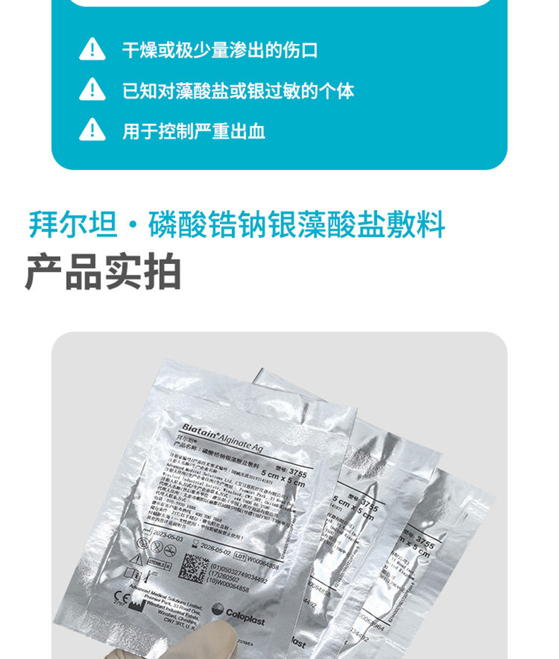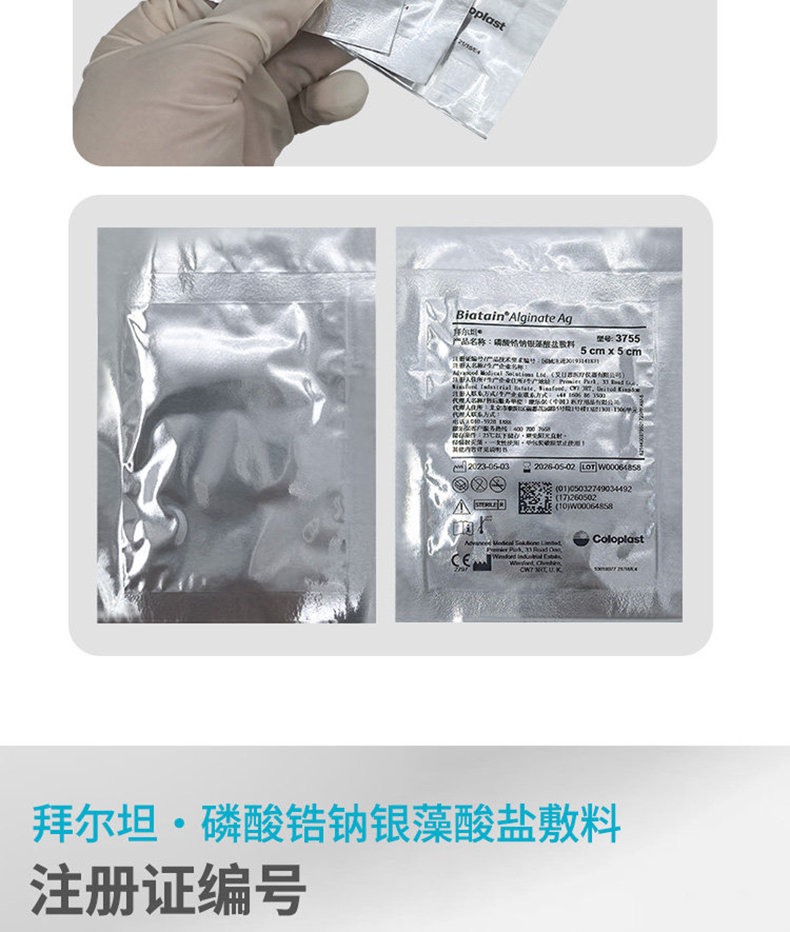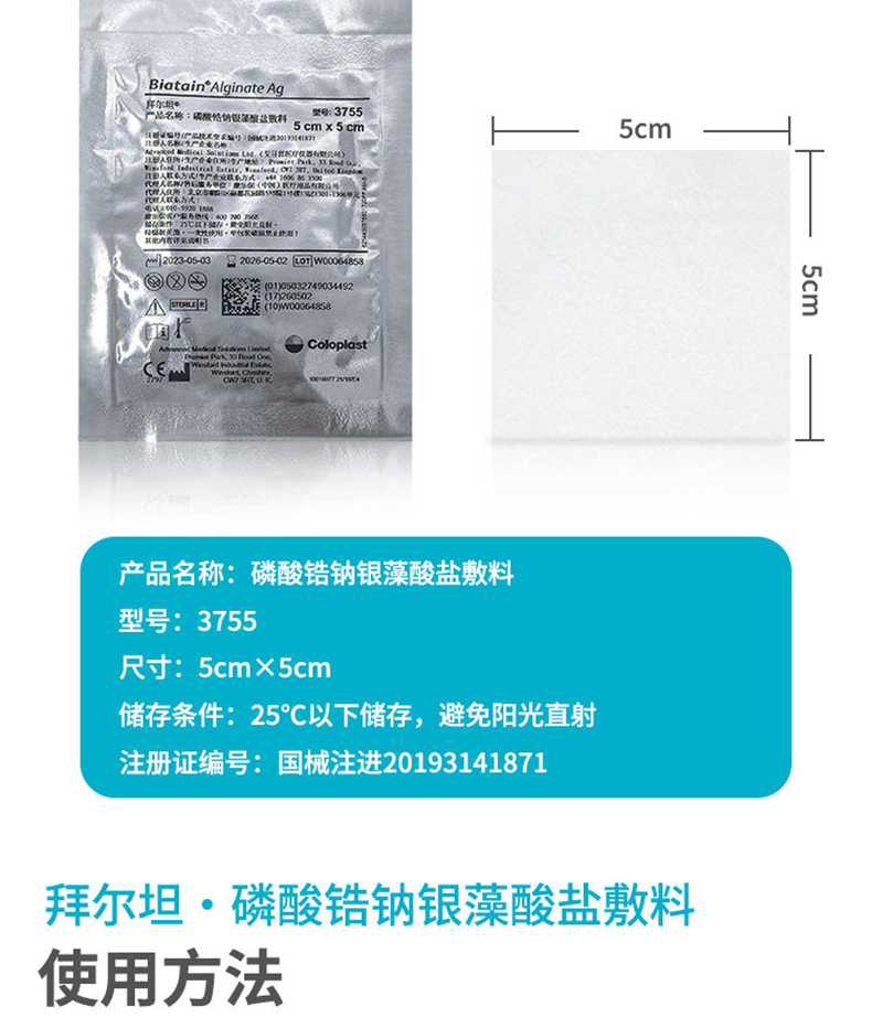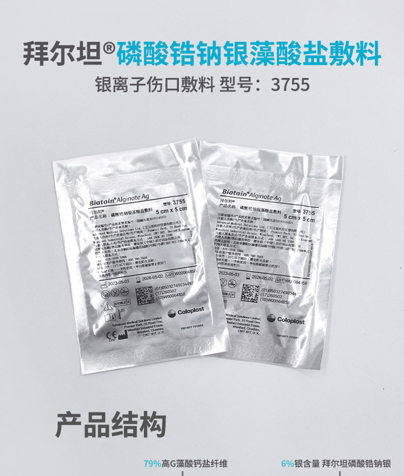 拜尔坦3755拜尔坦敷料拜尔坦磷酸锆钠银藻酸盐敷料5cm*5cm