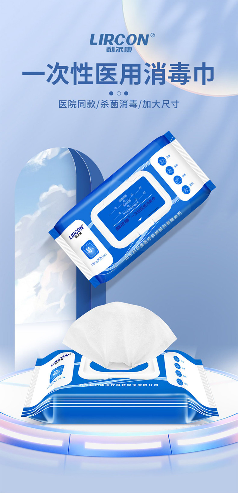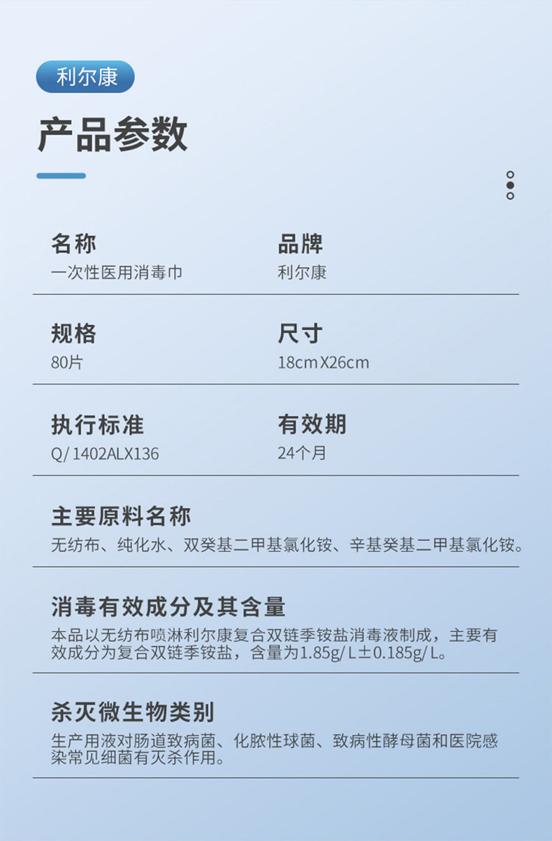 利尔康一次性消毒巾利尔康消毒湿巾利尔康湿巾纸