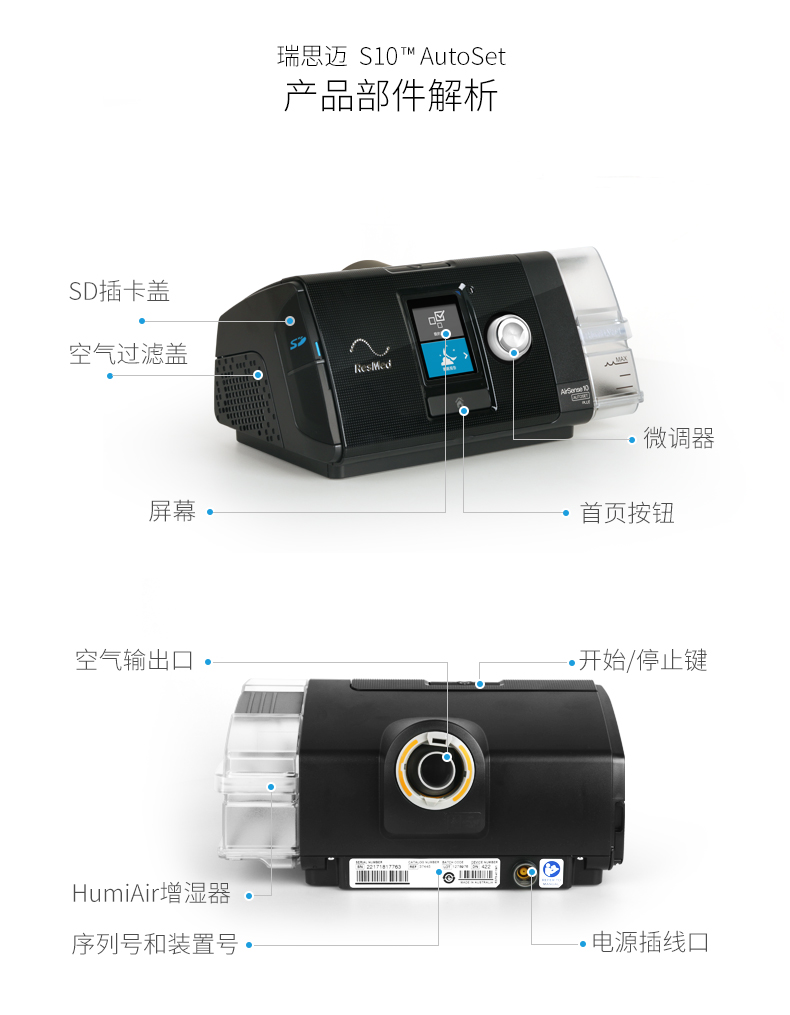 瑞思迈呼吸机瑞思迈S10呼吸机瑞思迈鼾症呼吸机瑞思迈单水平呼吸机适用呼吸暂停/打鼾/大呼噜